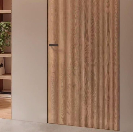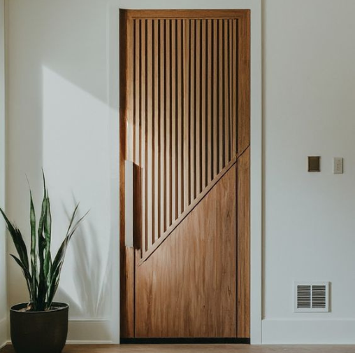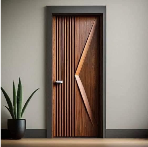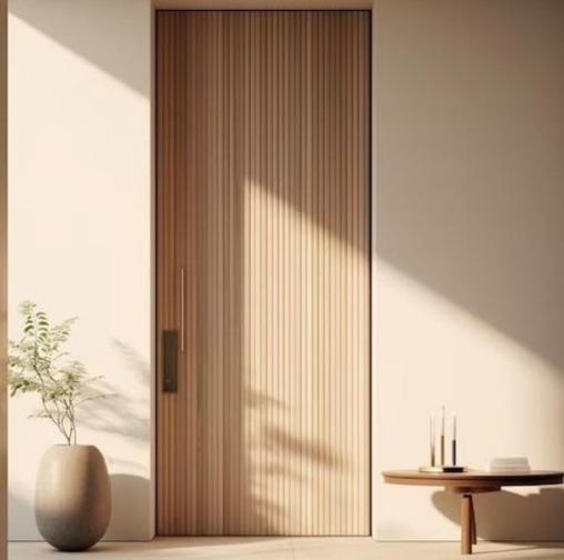 Contoh: Pintu polos motif garis vertikal/horizontalPintu list minimalisPintu sliding jati natural